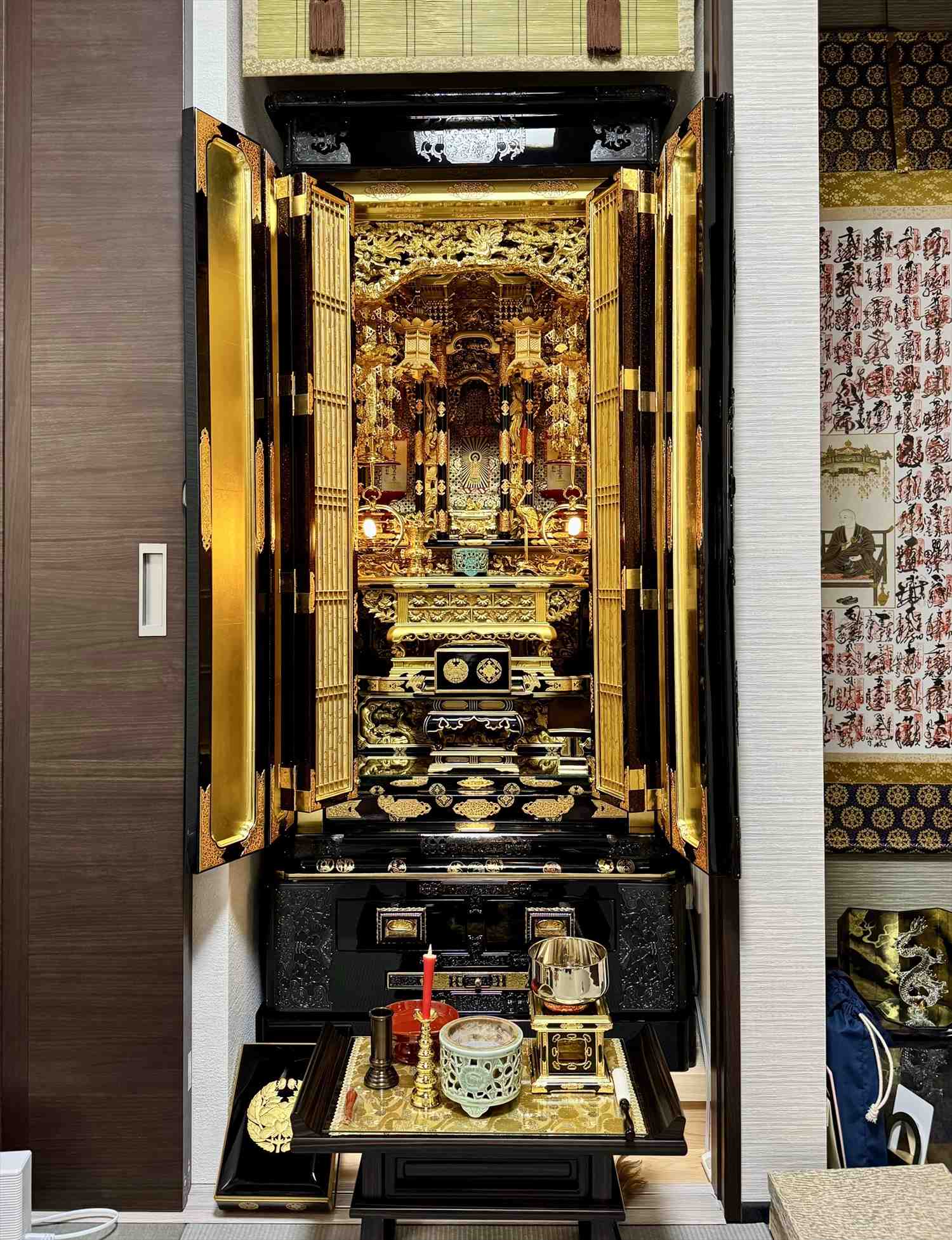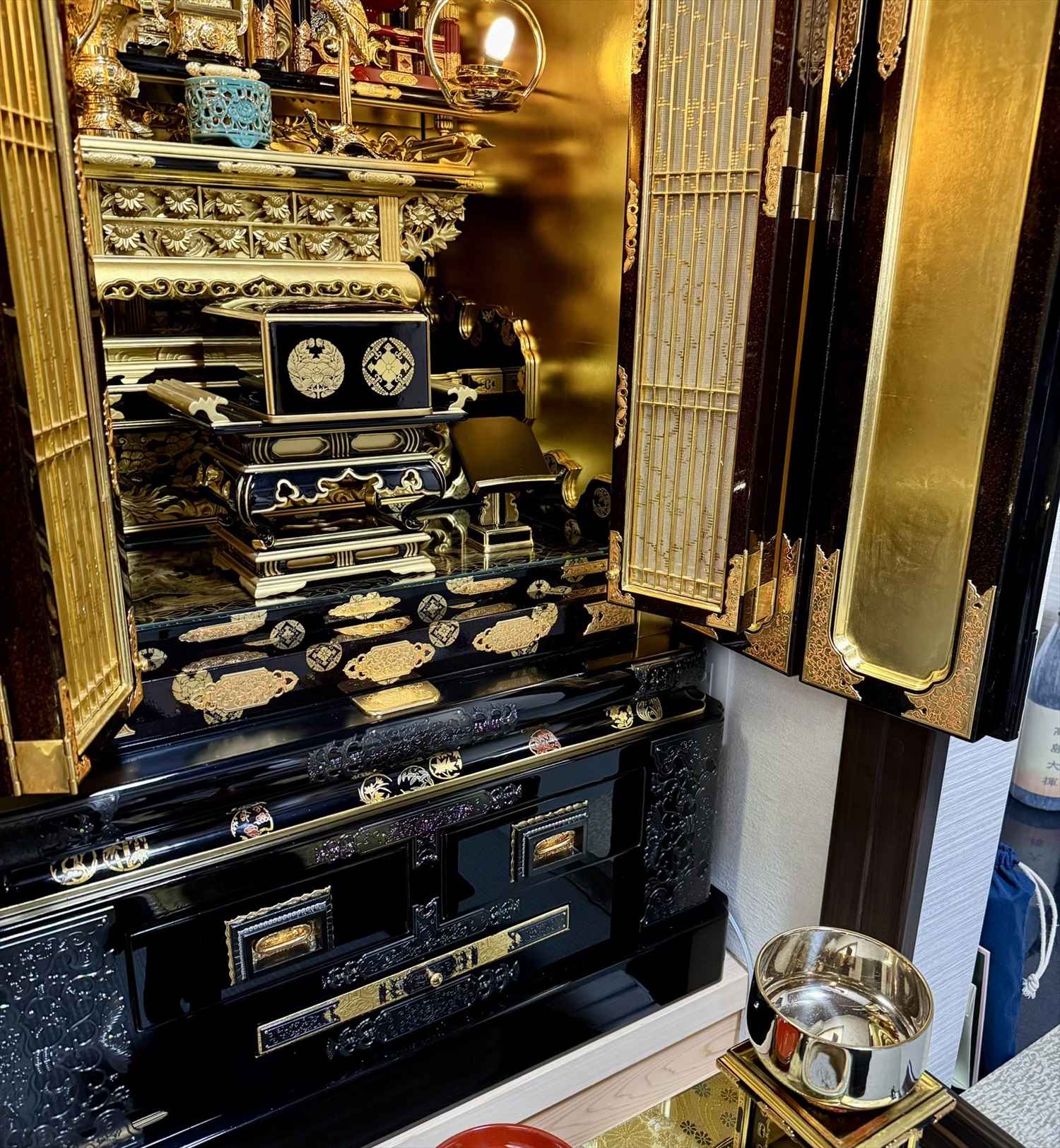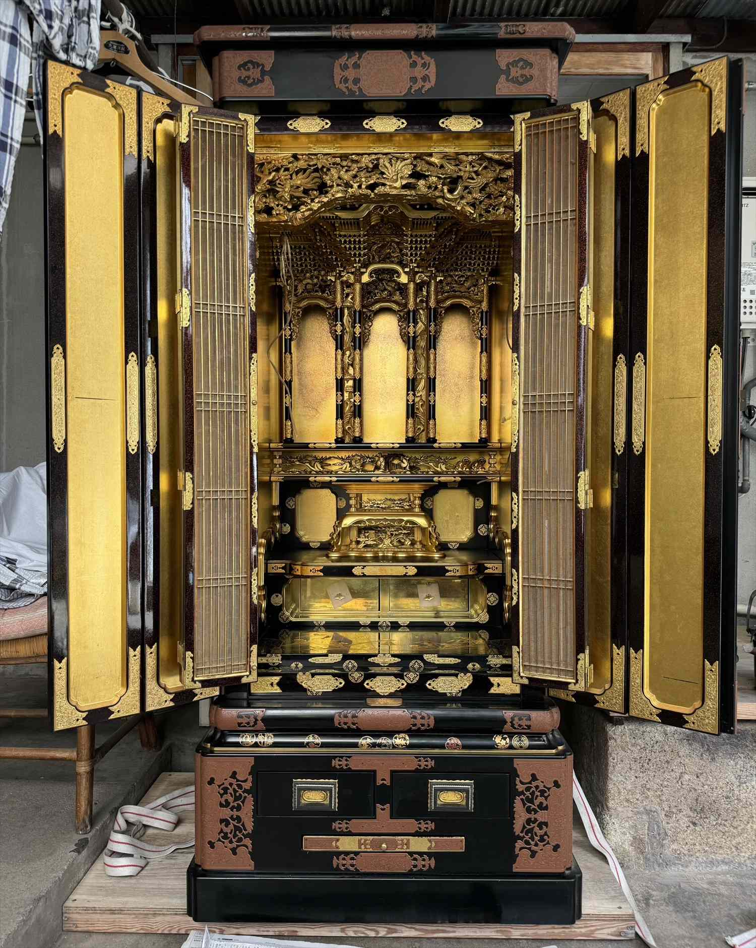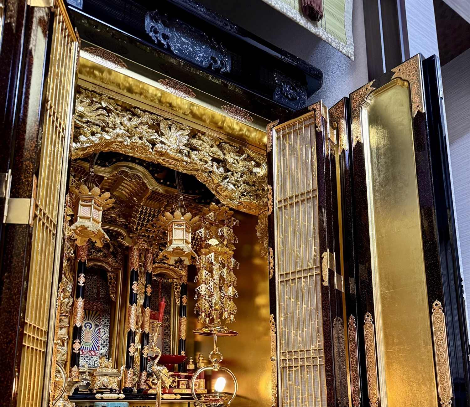 戻ってきたお仏壇は、長年の歴史を感じさせつつも、見違えるような輝きを放っていました。砂川さんの丁寧な仕事ぶりに惚れ込み、今ではお仏壇のことで悩んでいる知人がいれば、自信を持って砂川さんをご紹介しています。