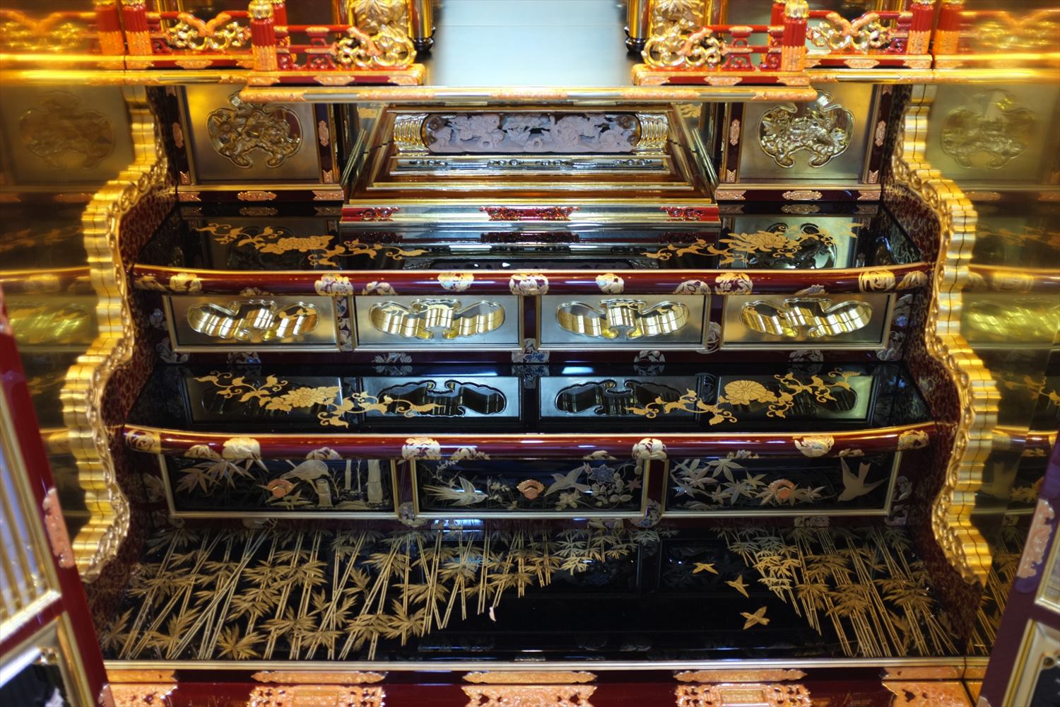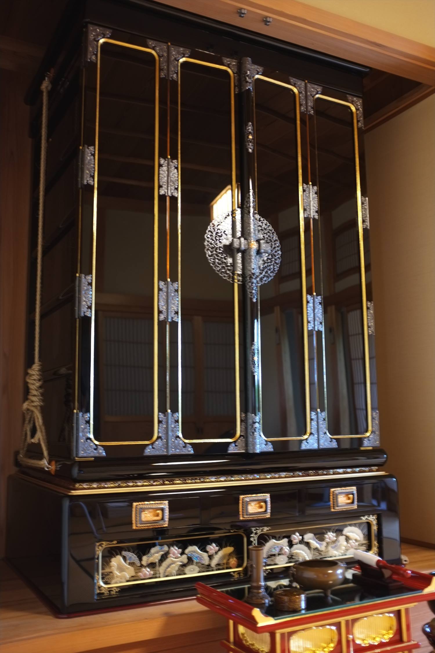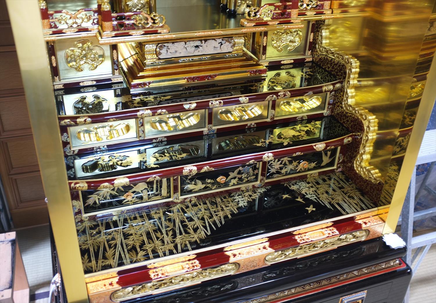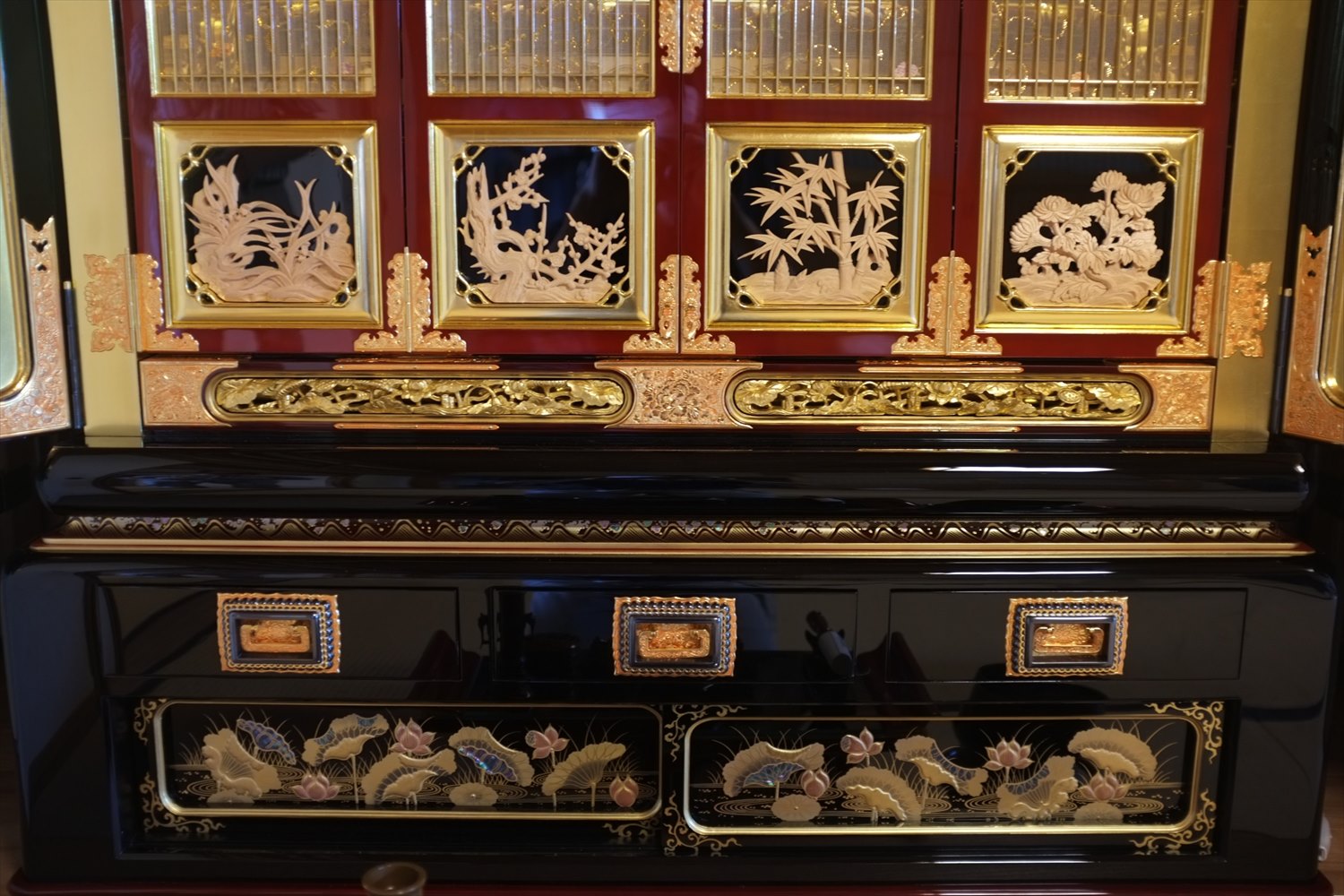 さらに各壇の周りは総呂色(ろいろ)で磨き上げ、下壇には沈金を施すという、私が理想とする最高峰の仕様を詰め込みました。