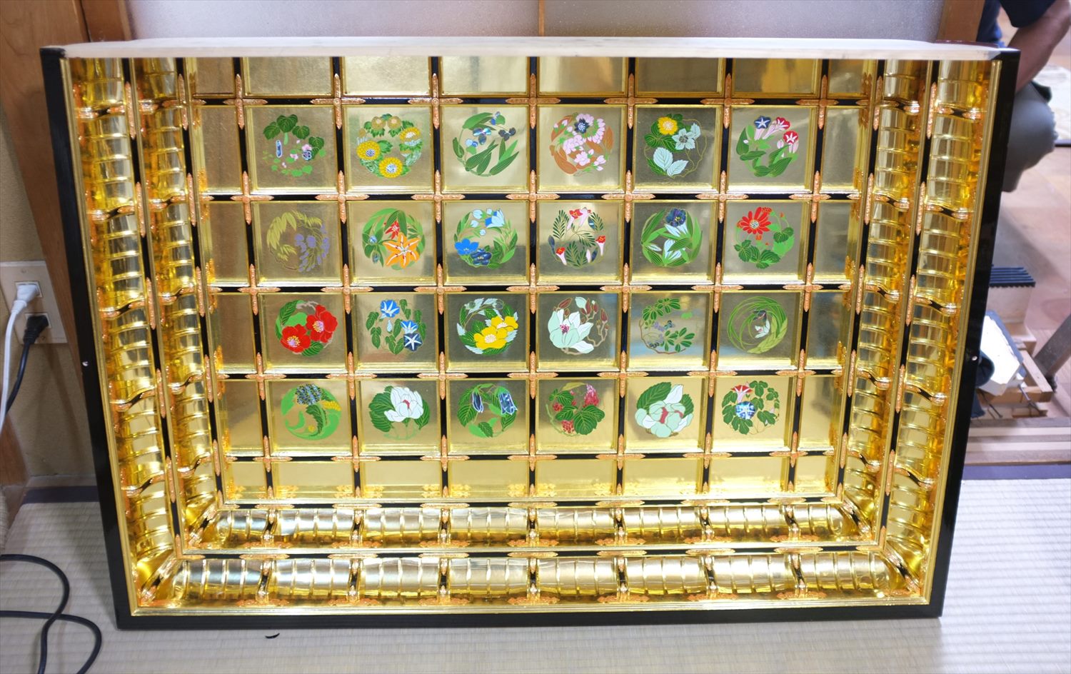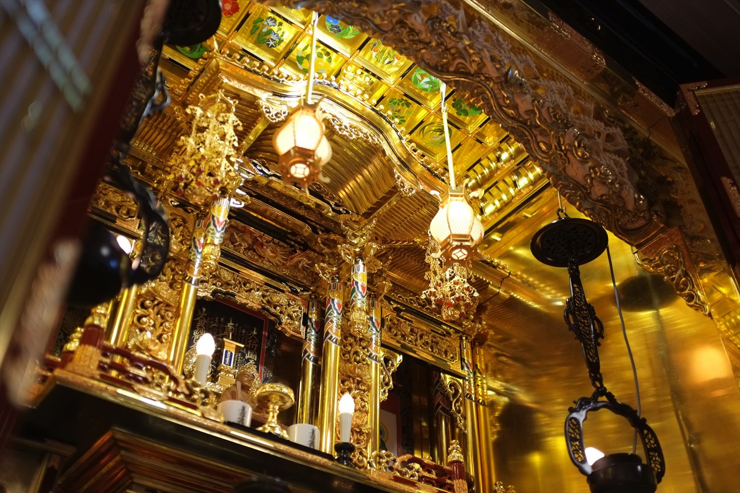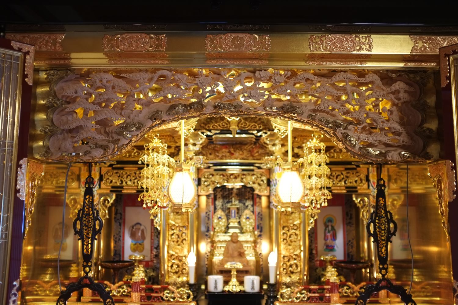 そんな決意で制作に臨みました。 内部は、二重格天井に花丸彩色、全ての隅に精緻な錺金具を施し、須弥壇には奥深い輝きの白檀塗りを採用。